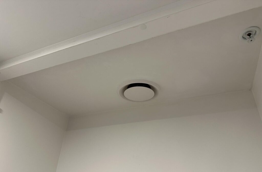 A fire sprinkler leak within a residential apartment resulted in water ingress into the ceiling cavity, impacting plasterboard and insulation systems.