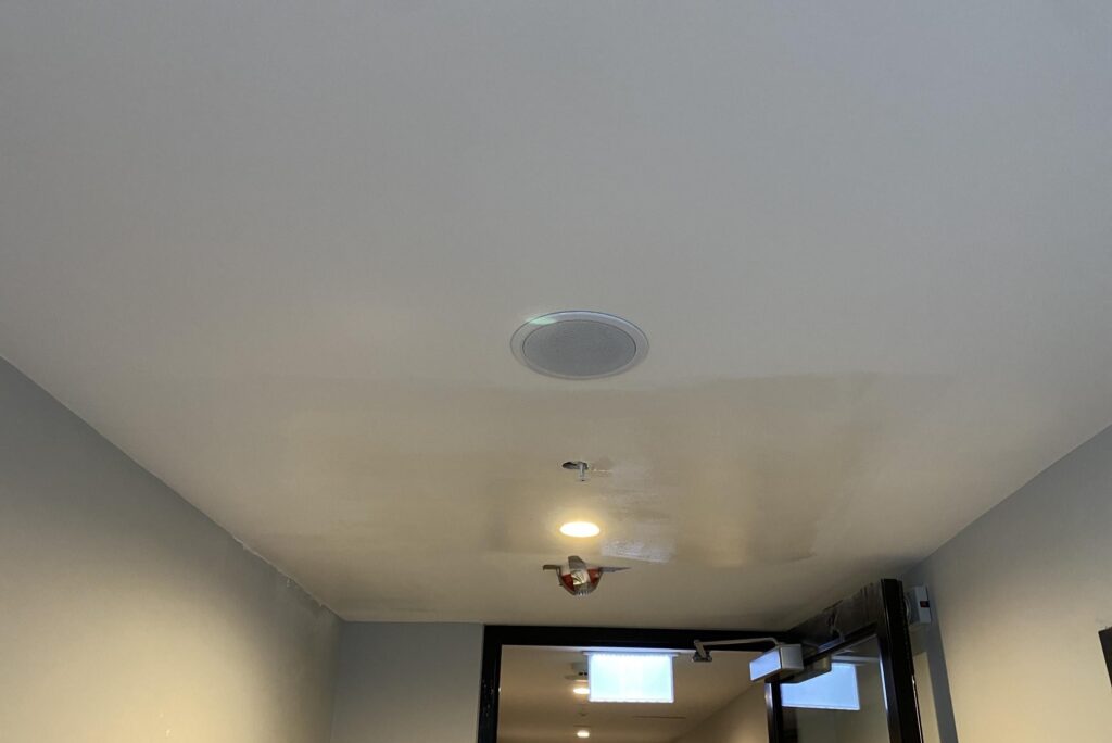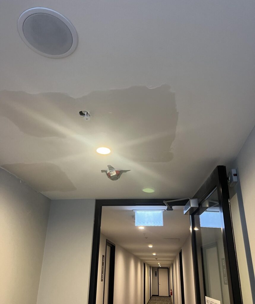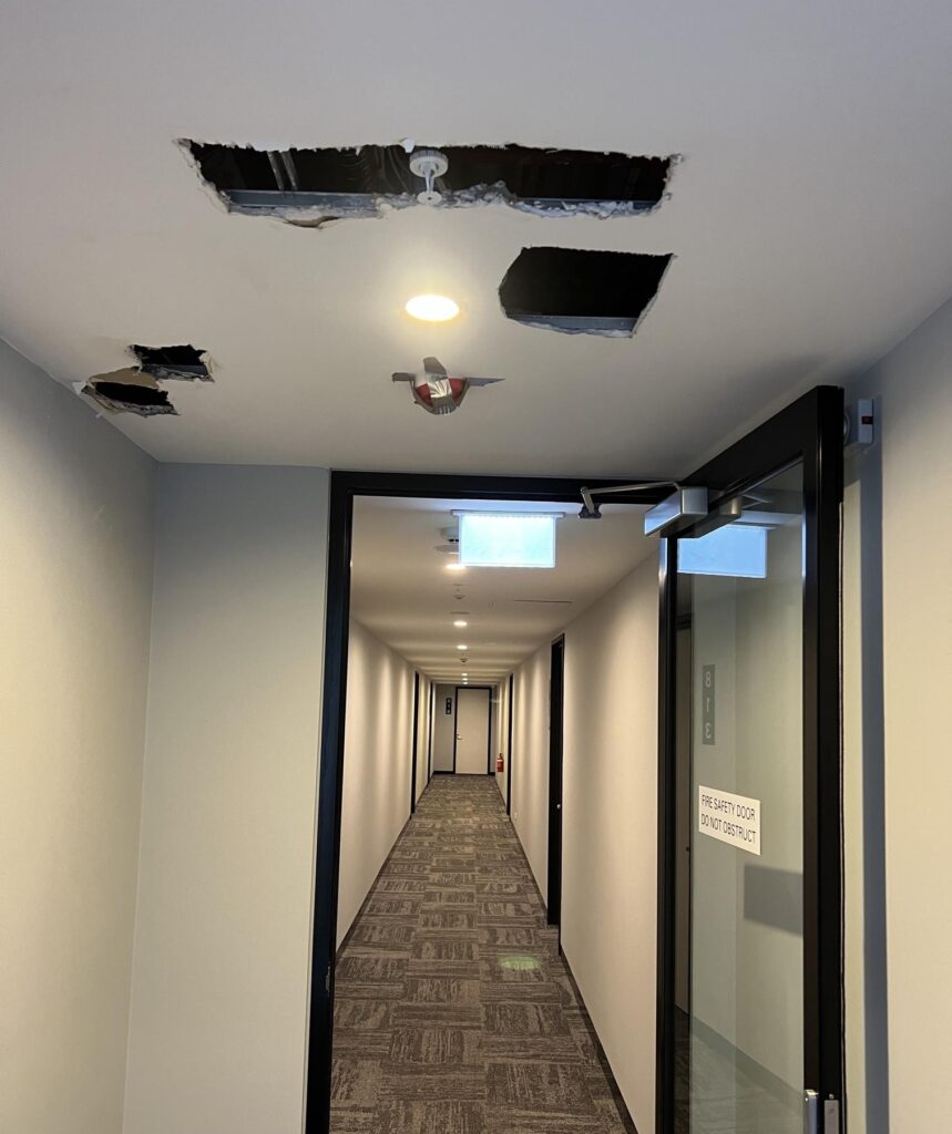 The affected ceiling areas were reinstated to a clean and consistent finish, restoring the appearance of the common areas while maintaining safe access throughout the works.