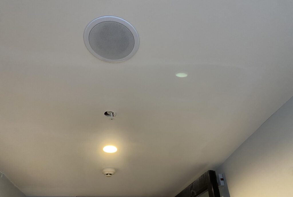 The works involved controlled access, removal of damaged sections and reinstatement of ceiling finishes, completed within an occupied environment.
